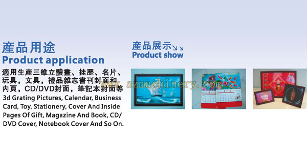 適用生產(chǎn)三維立體畫、掛歷、名片、玩具,文具,禮品雜志書刊封面和內(nèi)頁,CD/DVD封面,筆記本封面等。