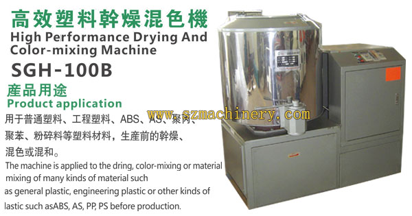 用于普通塑料、工程塑料、ABS、AS、聚丙、聚苯、粉碎料等塑料材料。生產(chǎn)前的干燥、混色或混和。